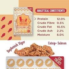 Product Name:Cat treats Catnip Biscuit – Salmon Weight/Unit:40g Ingredients:Cereals, Various Sugars, Oils And Fats, Catnip 2%, Derivatives Of Vegetable Origin, Minerals Guaranteed Analysis: Crude Protein 12% Crude Fibre 0.5% Crude Fat 10.5% Crude Ash 2.2% Moisture 8% Shelf Life:24 Months Usage: Cat Unit/Carton:24
