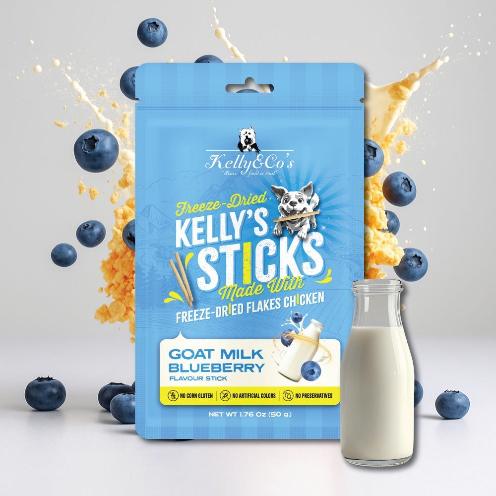 Kelly & Co’s Kelly Sticks, Goat Milk and Blueberry Flavored Dog Sticks.